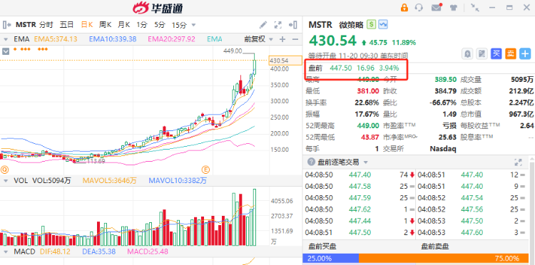 加密货币股再度飙涨,微策略涨4%,盘前市值突破1000亿美元;$MARA 涨超3%,Coinbase $COIN 涨超1%。消息面上,比特币日内首次突破94000美元。