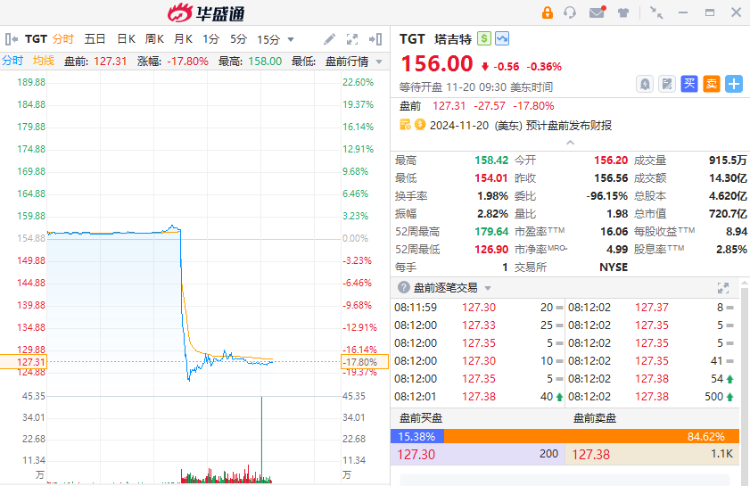 数据显示,塔吉特Q3营收为256.7亿美元,同比增长1.1%,不及市场预期;Non-GAAP每股收益为1.85美元,不及市场预期。