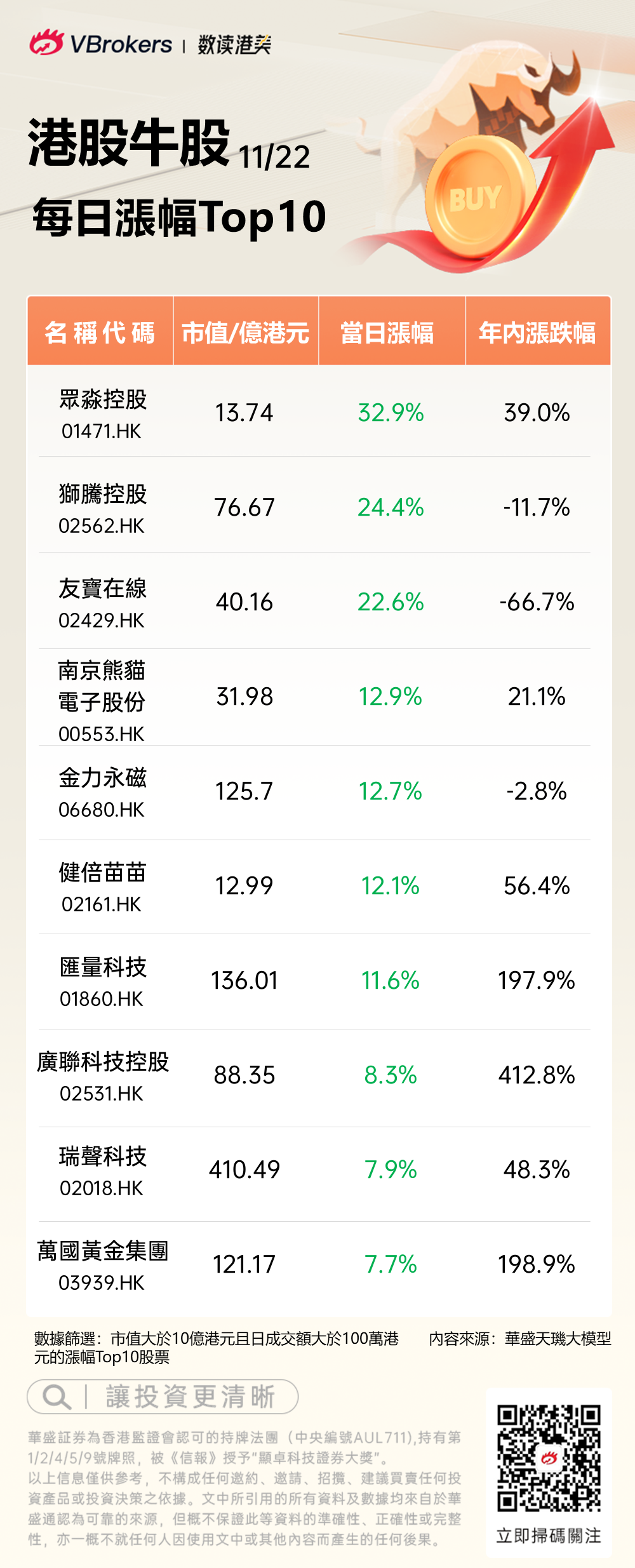 發仔统计了每日港股涨幅Top10,具体名单如下: