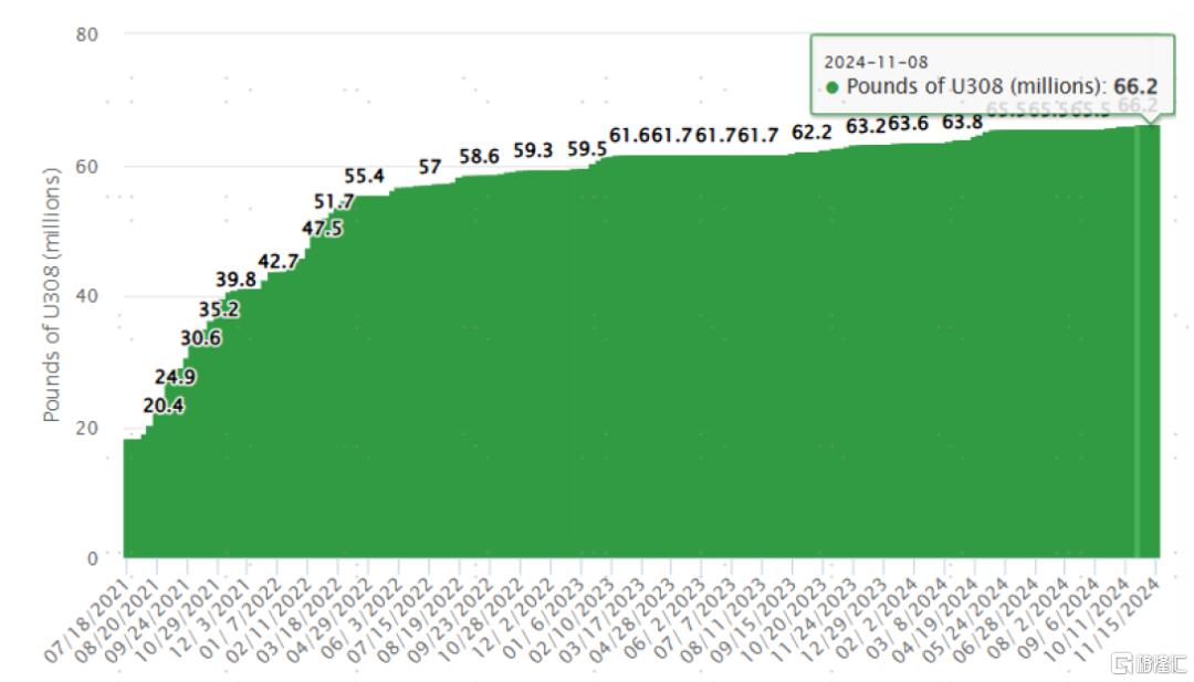 图表2:Sprott天然铀实物基金持续采购天然铀
