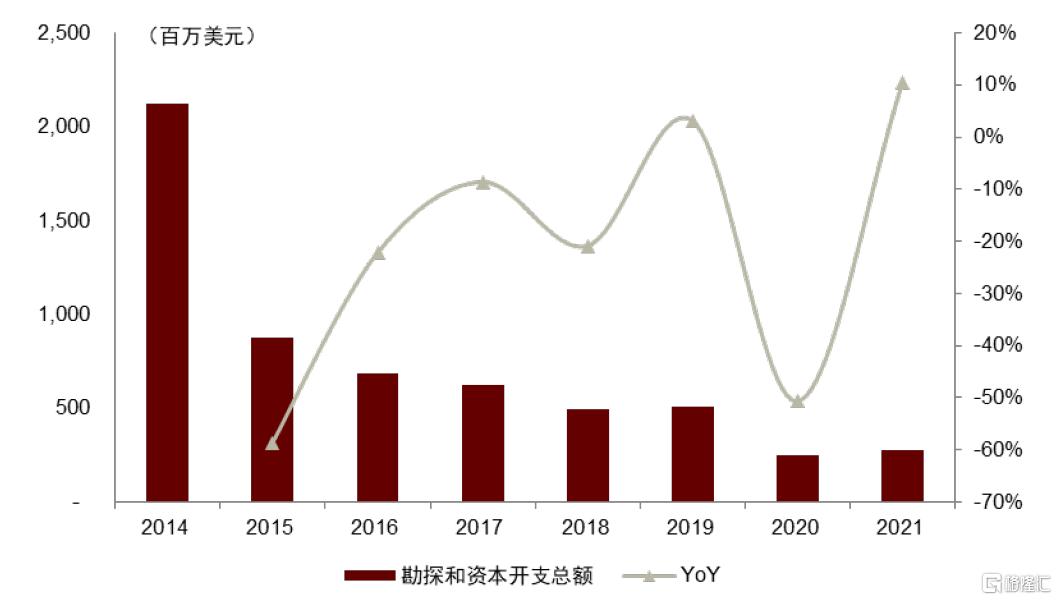 图表10:2014-2021年全球天然铀勘探和开发开支