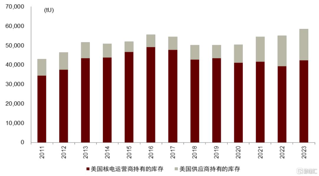 市场担忧大量的商业库存可能影响铀价上涨逻辑。回顾历史经验,2018年开始,天然铀的一次供需转向较大幅度的紧缺格局,即使当时行业中存在大量的商业库存,也并不妨碍一次供需扭转后铀价筑底回升的趋势,但是价格上涨的斜率受到了明显的抑制。虽然商业库存在天然铀供给中具有重要地位,但是出于保密性的考虑,多数国家不愿意披露生产商和核电业主持有的商业库存具体数量,这使市场对于商业库存可能影响铀价上涨存在普遍的担忧。