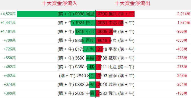 好仓(认购证及牛证)方面,过去一周,阿里巴巴相关好仓获4528万港元资金净流入部署,快手、小米也分别录得1441万、1181万资金净流入;腾讯相关好仓录得2214万港元资金净流出套现,中芯国际、汇丰相关好仓也分别获1570万、956万港元资金净流出了结。