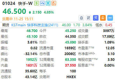 快手周一股价升超4%,憧憬消息可带动快手股价看好可留意快手牛证( $50377.HK ),收回价 39 港元,行使价 36.5 港元,25 年 4 月到期,有效杠杆约 4.8 倍。如看淡可留意快手熊证( $61425.HK ),收回价 55 港元,行使价 57.5 港元,27 年 12 月到期,有效杠杆约 4.5 倍。