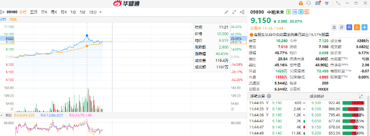 中旭未来 $09890.HK 一度放量大涨40%,现报9.15港元,成交额3.56亿港元。