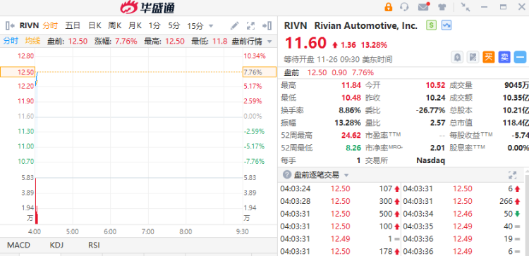 Rivian盘前涨超7%,公司获66亿美元贷款批准,加速佐治亚州工厂建设。