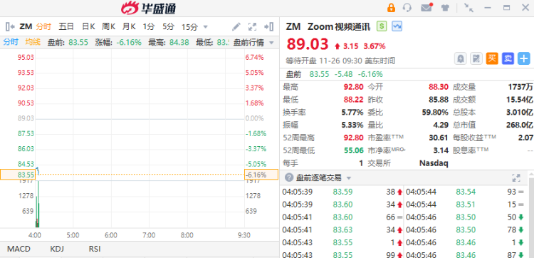 ZOOM $ZM 绩后跌超6%,第三财季总营收为11.775亿美元,同比增长3.6%;GAAP净利润为2.071亿美元,上年同期为1.412亿美元。该公司预计2025财年全年总营收为46.56亿美元至46.61亿美元。