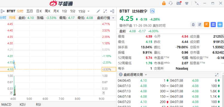 加密货币概念股盘前走低,比特数字 $BTBT 、Coinbase $COIN 跌超3%,Hut8、嘉楠科技跌超2%。