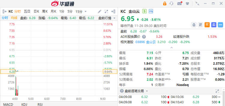 中概股盘前多数走低,金山云跌超9%,小鹏汽车、蔚来、台积电跌超1%。