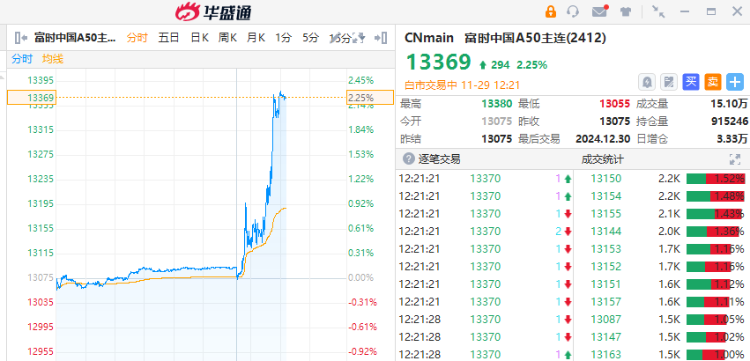 A50大幅拉高。MSCI中国A50互联互通指数期货、富时中国A50指数期货涨超2%。
