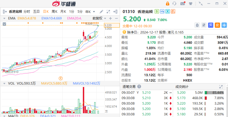 香港寬頻(01310.HK)公布,中國移動香港提出有條件自願全面要約,每股現金價5.23元,較停牌前收報溢價7.61%。連同貸款票據要約以及受限制股份單位要約,最高代價約77.97億元。