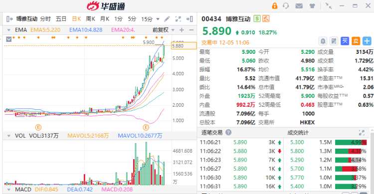 比特币概念股走高,博雅互动(00434)涨15.26%,集团累计持有约3183枚比特币,平均持仓成本约为每枚57,724美元。