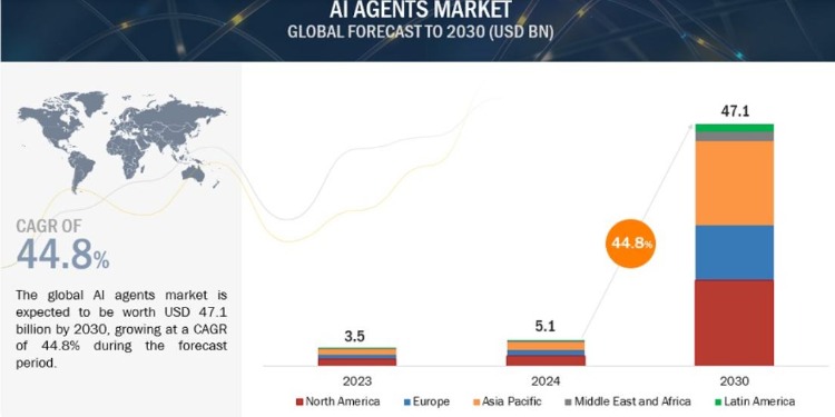 根据调研机构MarketsandMarkets的最新预测报告,人工智能代理市场规模预计将从 2024 年的仅仅 51 亿美元大幅扩张至 2030 年的大约 471 亿美元,期间复合年增长预期高达 44.8%。该机构表示,使用 AI 代理,企业可以自动化各种非常复杂的流程并减少人工干预以避免频繁出现的人为错误,AI 代理与企业级内部自动化工具的集成将实现从制定产品销售方案到售后服务的一站式AI处理,大幅提升企业经营效率。