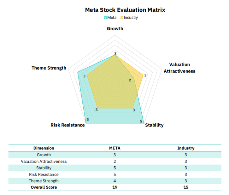 该模型主要从五个维度对公司及行业进行评估,这五个维度分别为:增长能力、估值吸引力、稳定性、抗风险能力以及主题强度。每个维度的评分范围是 1 到 5 分,其中 1 分为最低分,5 分为最高分。总体而言,分数越高意味着基本面越强。对于每个维度,将会依据所选股票的行业及历史数据构建多因素模型,并运用定量模型来自动为每个维度打分。