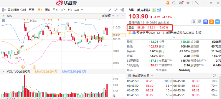 美光科技预计,截至2月的2025财年第二财季销售额约为79亿美元,显著低于分析师此前预期的89.9亿美元;扣除某些项目后的每股利润将不超过1.53美元,远低于1.92美元的市场预期。