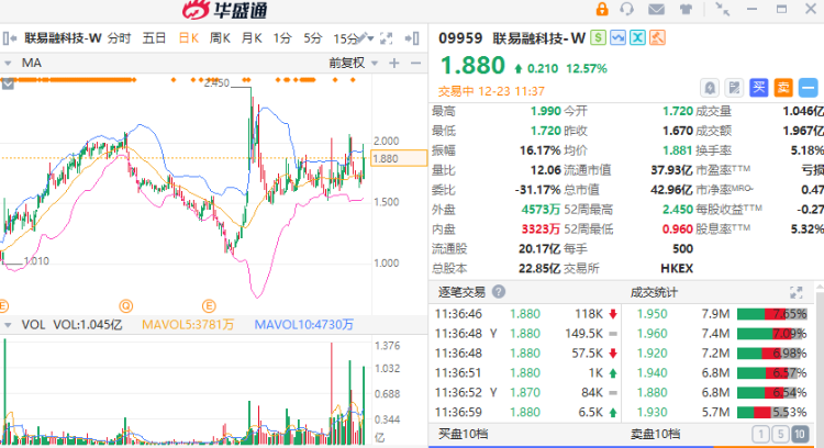 智通财经APP获悉,联易融科技-W(09959)盘中涨超13%,截至发稿,涨12.57%,报1.88港元,成交额1.97亿港元。