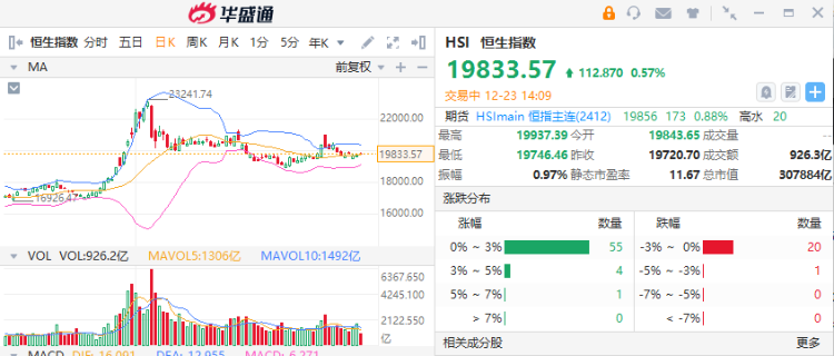恒指上周受制50天线水平,全周计累跌约1%,结束过去3周升市。美国11月核心通胀数据PCE按年增2.8%,升幅低过预期,按月升约0.1%,为5月以来最慢增速。市场憧憬通胀压力回落,或缓和投资者对美国减息空间减少的忧虑。