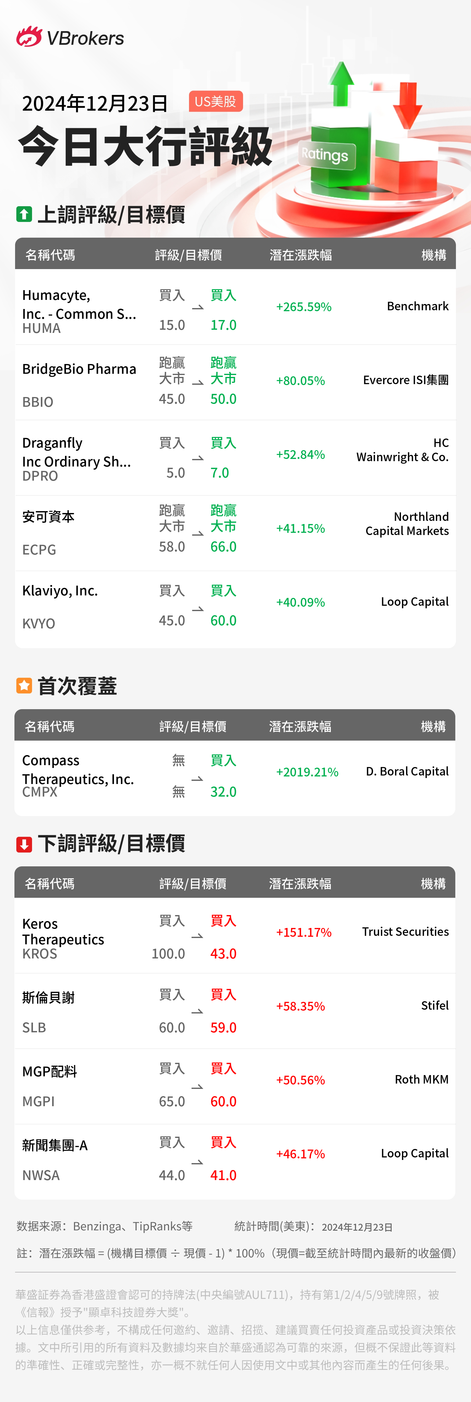 | Klaviyo, Inc. | KVYO | 上调 | $60.0 | $42.83 | 40.09% | Loop Capital |