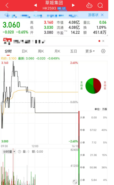然而,草姬集团(02593.HK)上市后,次日股价就出现较大幅度的下跌,盘中一度跌逾18%。12月23日,草姬集团股价继续下探,收跌9.94%,报3.08港元,已跌破3.75港元/股发行价。