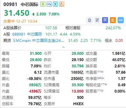 芯片股早盘集体走高,截至发稿,宏光半导体(06908)涨8.47%,报0.64港元;中芯国际(00981)涨7.89%,报31.45港元;华虹半导体(01347)涨5.67%,报22.3港元;晶门半导体(02878)涨5.26%,报0.5港元。
