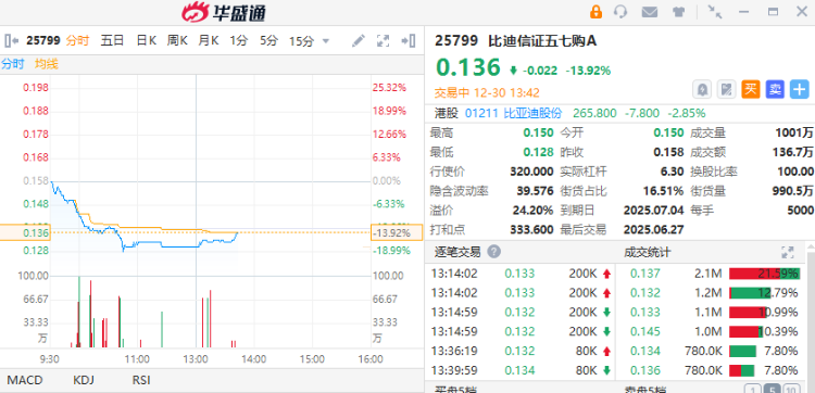 其他车股早段亦有好仓资金积极流入,包括比亚迪(01211) $01211.HK ,股价早段同样曾跌约3%。若预期比亚迪股价有望反弹,可以留意比亚迪认购证(25799) $25799.HK ,行使价320港元,明年7月到期,实际杠杆约6.3倍。