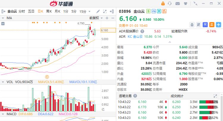 海通证券发研报指,金山云商业结构优化与AI技术的结合,以及生态协同优势将推动业绩增长。公司作为国内领先的云服务提供商,技术和服务能力不断提升,且已成功优化收入结构以提高盈利能力。受益于小米和金山软件集团对云服务的需求,预计金山云的公有云服务收入将快速增长,同时,行业云服务收入也将保持稳定增长。整体来看,金山云在2024至2026年的收入年增长率预计为10.5%、14.4%和16.9%。