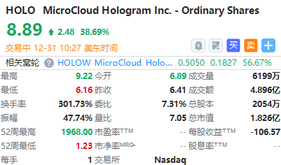 周二,MicroCloud Hologram $HOLO 股价走高,截至发稿,该股涨超38%,报8.89美元。此前该公司研发出一种先进的技术解决方案。该解决方案采用快速绝热驱动协议,以实现对双量子点系统中两个重空穴自旋量子比特的相干控制。