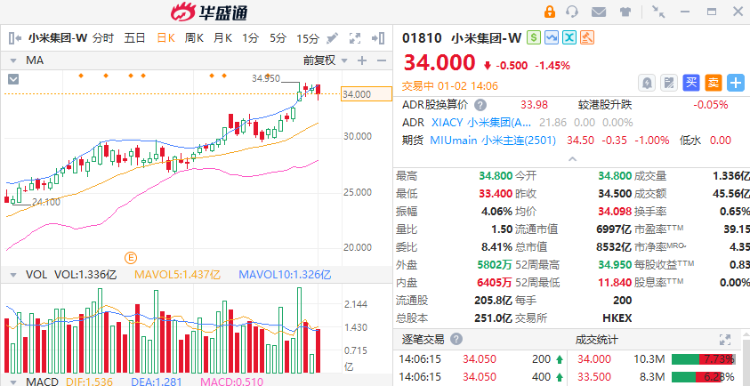 小米股价早段最多回吐逾3%,资金流显示好友积极入场。