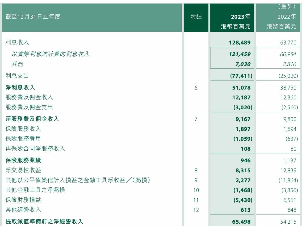 收入结构中,非利息收入占总经营收入不少,当中包含了净保费收入、净交易性收益,以及净服务费及佣金收入。