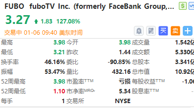 Fubo TV $FUBO 暴涨超127%,据报将与迪士尼达成协议合并在线直播电视业务。