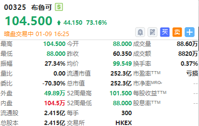 华盛资讯01月09日讯,港股布鲁可正在暗盘交易中,截至发稿涨73.16%,报104.5港元/股,中签一手赚13245港元,最新总市值252亿港元。该股预计将于1月10日正式挂牌上市,配售结果将于今日晚间披露。