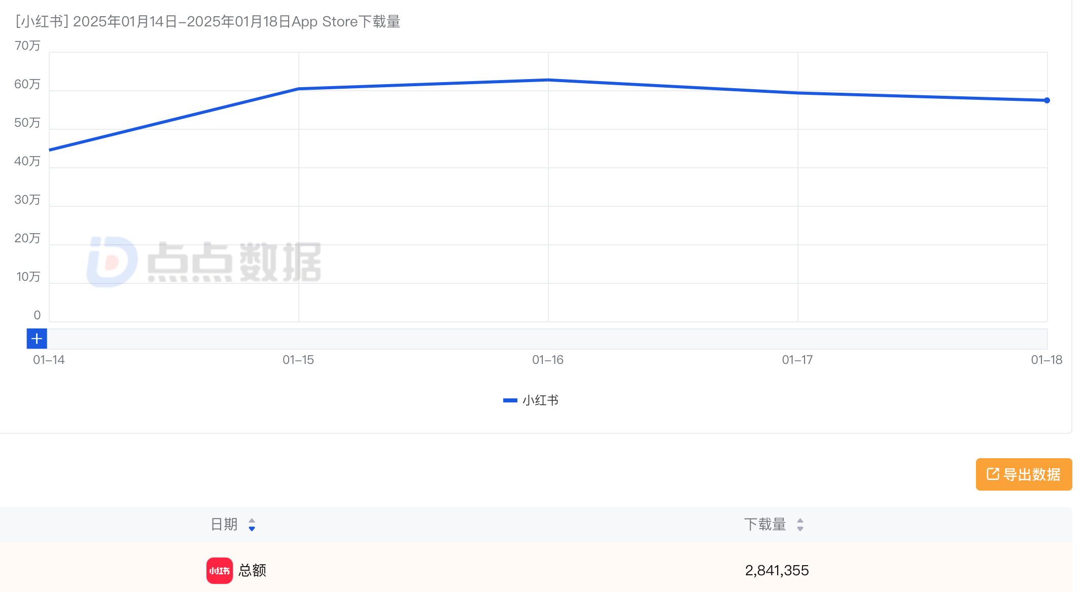 而据点点数据检测,1月14日到1月18日这五天时间里,除中国以外的其他海外地区小红书在苹果商店的下载量分别为44.44万、60.37万、62.68万、59.28万和57.37万,以此合计,在“Tiktok 难民”事件传播的前120个小时里,小红书在海外市场上吸纳的苹果新用户约为284.14万。