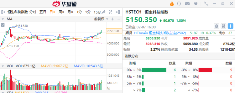 中国AI概念股则大幅反弹。2月3日,香港股市蛇年开市首日,阿里巴巴股价上涨6%,金山云(03896.HK)股价飙升32%,创历史新高。