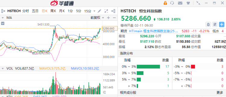截至2月10日收盘,恒生科技指数报5286.66点,较1月13日的低点4221.92上升1064.74点,涨幅25.2%。一般来说,技术性牛市是市场指数从一个低点反弹超过20%的情况。恒生指数同期上涨14.03%,也表现优异。