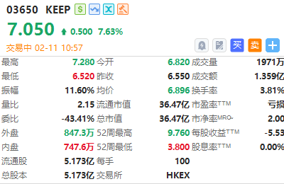 KEEP( $03650.HK )涨超7%,成交超1.3亿港元,公司近日提出“All in AI”战略规划。