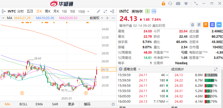 在经历了近一年的疲弱下跌后,本周,美国芯片巨头英特尔股价突然有如神助,连续上涨四天,累计上涨26%,直接触及200日均线。