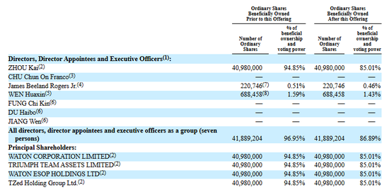 周凯 ZHOU Kai,持有和控制683万股、占94.85%;