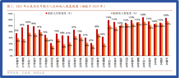 整体上,春节期间游客的出行热度持续提升,且旅游目的多元化特征明显。尽管2024年同期数据已处高位,但2025年春节出游数据依然强劲增长,彰显了疫后出行消费的强大韧性。游客数量自然增长的趋势未变,预示着旅行消费市场将持续回暖。