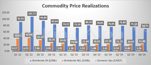 该公司表示,第四季度原油平均实现价格为每桶69.73美元,低于上年同期的每桶78.85美元。
