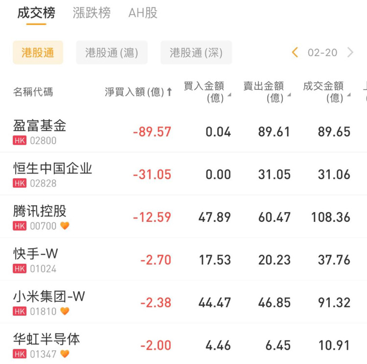 盈富基金、腾讯控股分别遭沽出89.57亿港元、12.59亿港元。