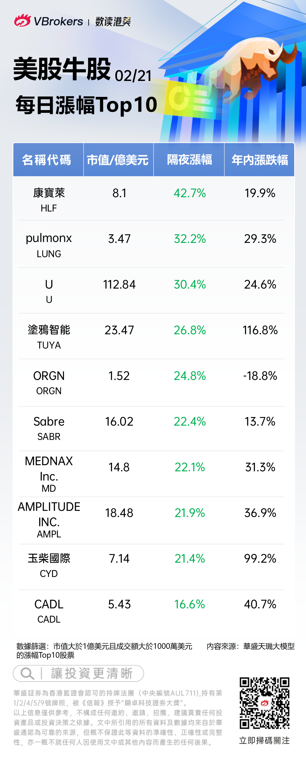 编者按:《美股牛股》栏目旨在追踪每日美股市场涨幅TOP10牛股,紧抓涨势迅猛的个股,助力投资者快速把握美股交易机会。