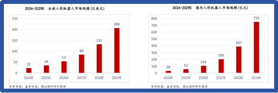 国证国际研报显示,全球人形机器人行业发展迅猛,已具规模。2024年市场规模达21.6亿美元。我国人形机器人市场潜力巨大。据中国人形机器人产业大会数据,2024年市场规模达27.6亿元。2025年大厂量产后,产业规模化加速,应用场景拓宽。预计2029年市场规模达750亿元,年复合增长超90%。