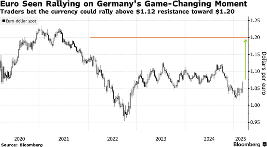 在候任总理默茨(Friedrich Merz)宣布德国将“不惜一切代价”保卫自己,并承诺放松对政府支出的限制后,投资者对这个欧洲最大经济体和传统上主张紧缩预算的国家迎来了里程碑式的时刻表示欢迎。