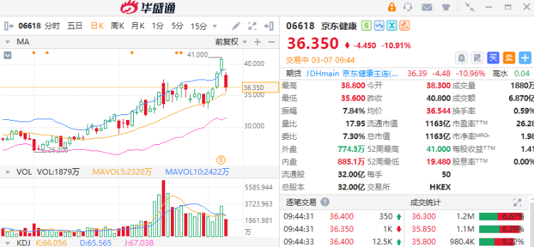 3月7日讯, “京东系”个股走低,京东健康跌超10%,京东物流跌超8%,京东集团跌近5%。