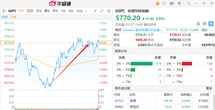 这番表态稍稍缓解了市场对美国经济衰退的担忧,受此影响,在其讲话期间,美股三大指数全线拉升,集体翻红,纳指一度涨近1%,截至收盘,道指涨0.52%,纳指涨0.7%,标普500指数涨0.55%。