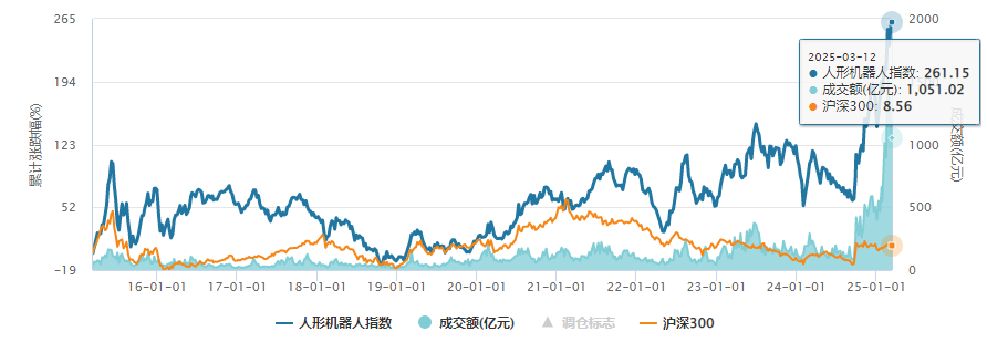 Wind数据显示,人形机器人指数已连日攀升,目前日成交额已经达到千亿元级别。