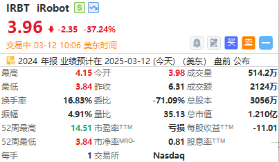 扫地机器人制造商 iRobot $IRBT 公司暴跌37%,在季度收益报告中透露,该公司第四季度的收入同比下降了 44%, 对自身能否继续运营存在重大疑虑。