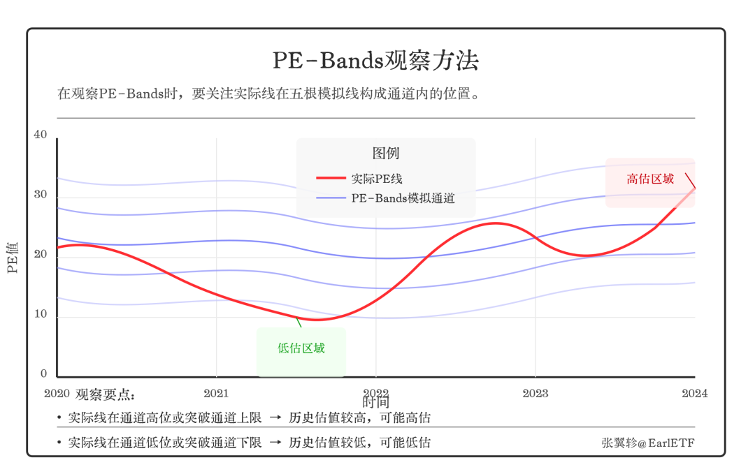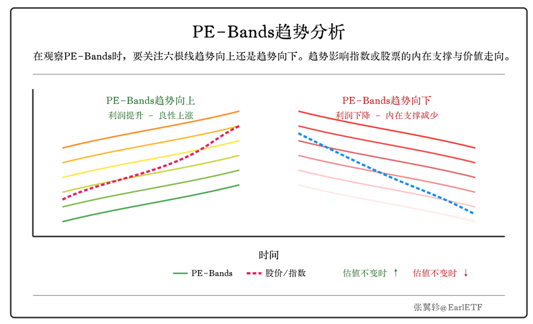 在观察PE-Bands时,主要关注两个趋势: