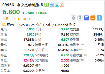 康宁杰瑞制药-B涨超16%,HER2双抗ADC药物JSKN003获突破性疗法认定。