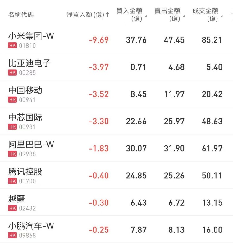 南向资金今日净买入港股25.32亿港元。其中港股通(沪)净买入21.88亿港元,港股通(深)净买入3.44亿港元。
